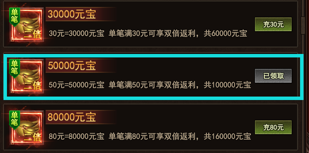 所以玩家领取不到对应的两倍三倍返利的,应该去更高档次里去领取。